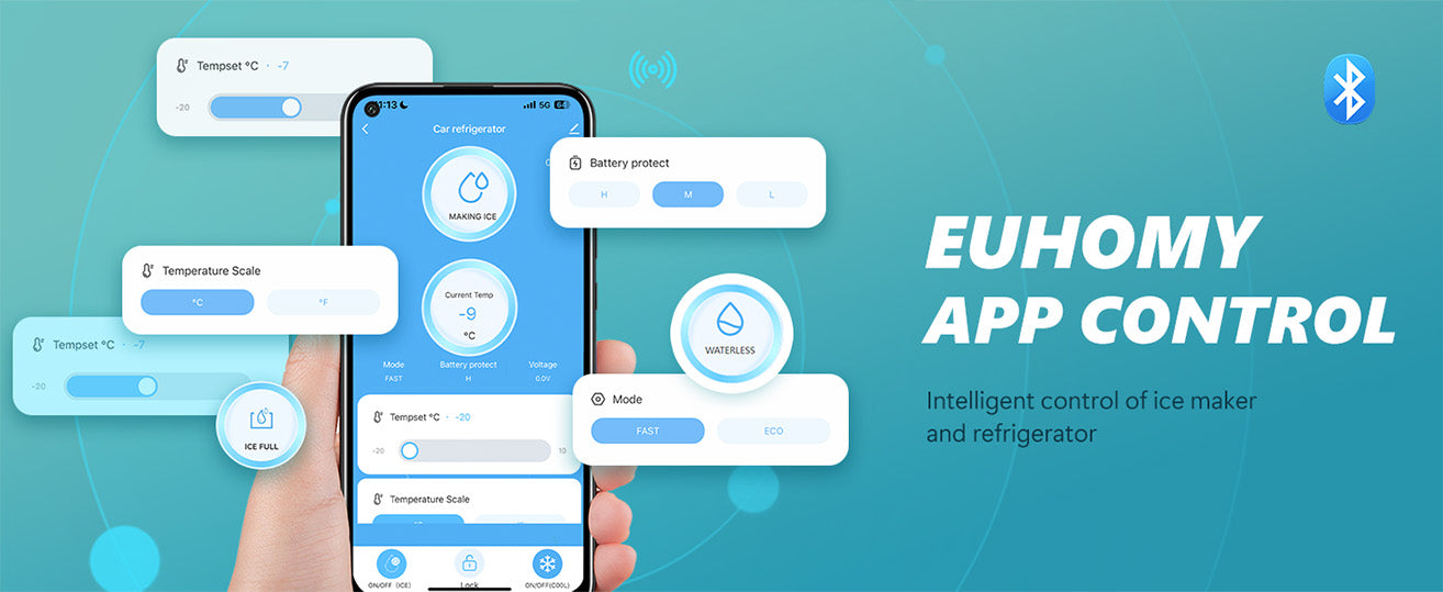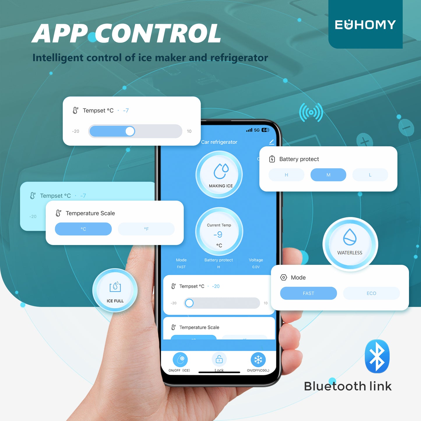 EUHOMY 12 Volt Fridge with Ice Maker Large Capacity Design Camp Refrigerator