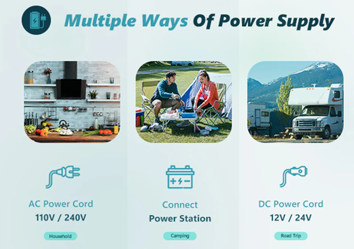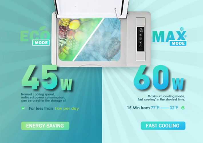 I tested this plugged into my portable power station Bluetti EB3A on Eco Mode, right out of the box after FedEx dropped it off. I plugged it in and the internal ice chest temp started at 107° F (middle of CA heat wave) Three hours later and my Bluetti is at 50% but the internal ice chest temp dropped to 46° F, this test was done inside my house. Five house later and my Bluetti is finally at 10% battery but the ice chest temp dropped to 37° F and it's using only 33-35 watts.