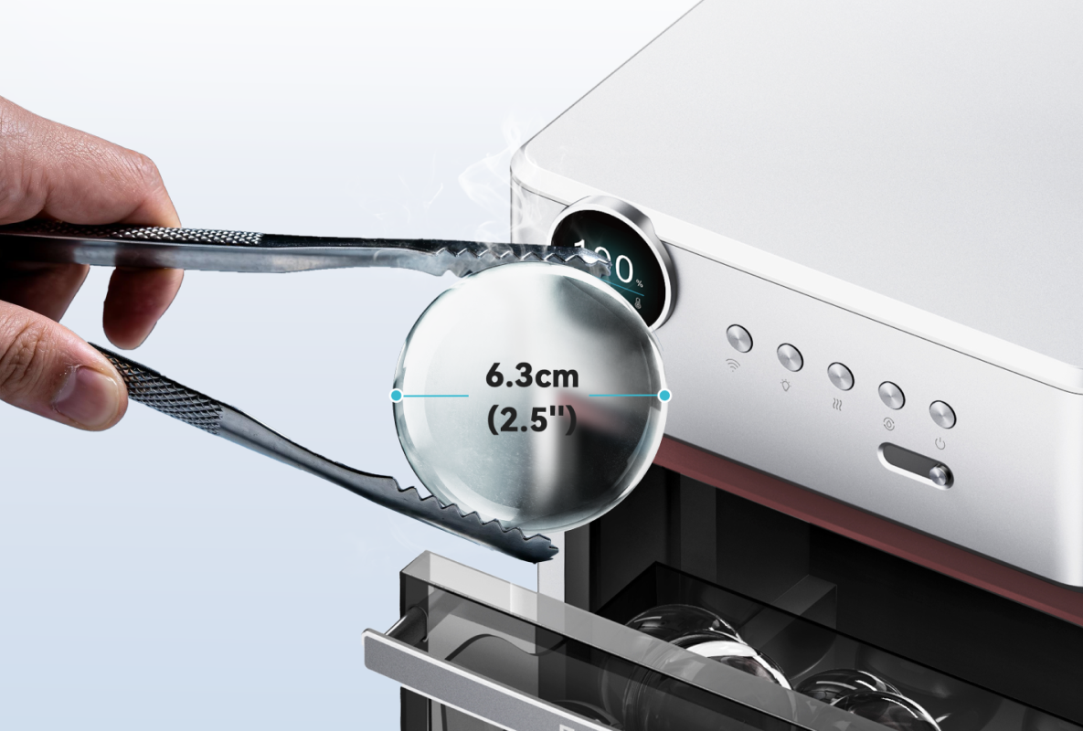 Perfectly round ice spheres with a 6.3cm (2.5'’) diameter, melting slowly to chill your drink without diluting the flavor.