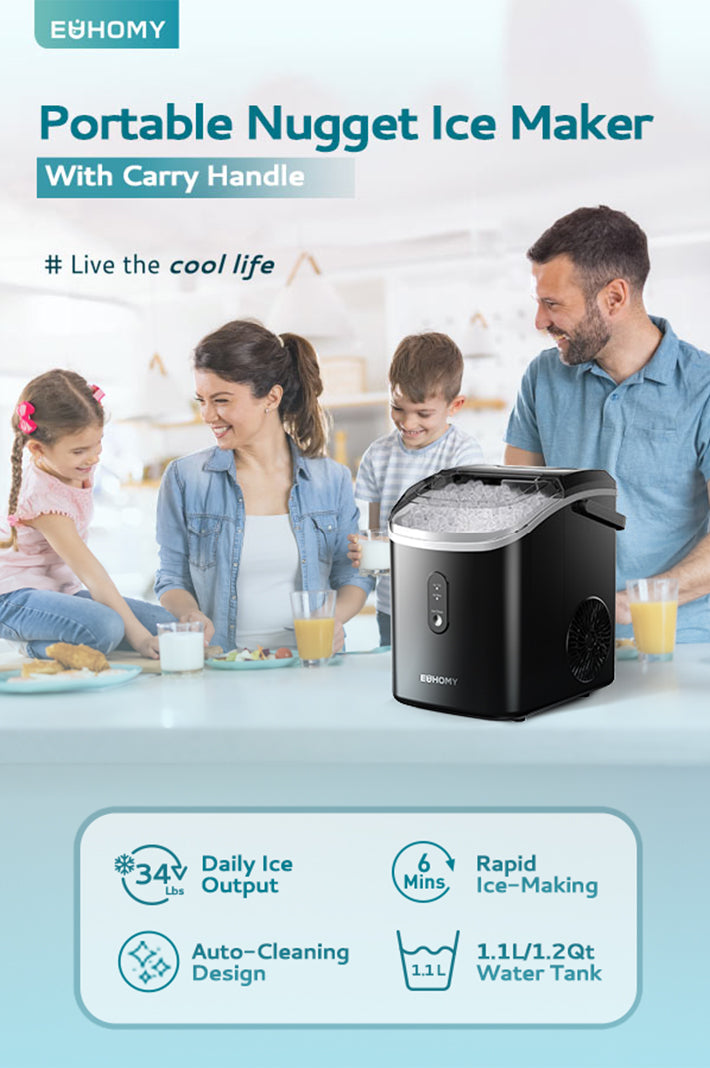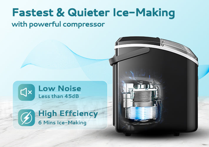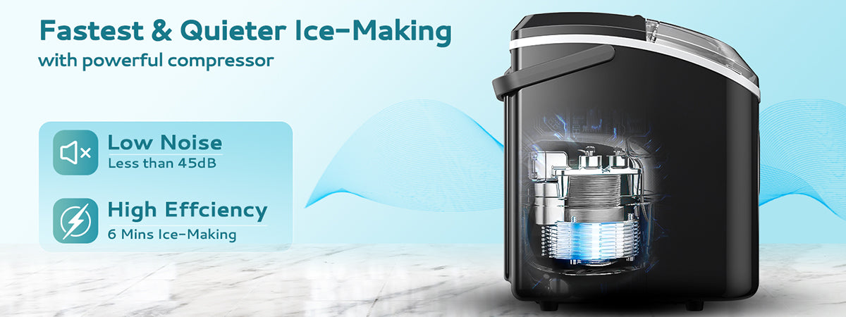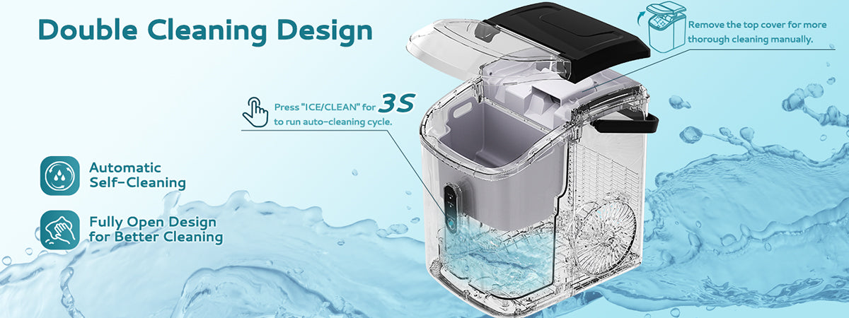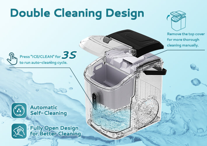 We suggest using an ice maker cleaner, vinegar, or lemon water. First, unplug the machine and then rinse all detachable parts with warm, soapy water. Wipe all internal parts with a soft cloth, add fresh water to the reservoir, and run a few cleaning cycles.