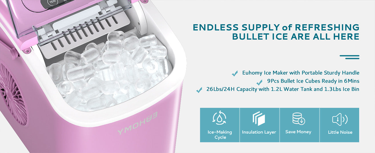 Euhomy Dart H1 Bullet Ice Maker - Pink