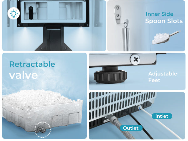 I love love love this ice maker. This is the ice machine I bought for my restaurant, which can meet my needs, ice cubes, and make perfect cocktails and drinks. What makes me even more satisfied is that this ice maker is easy to clean and easy to install.