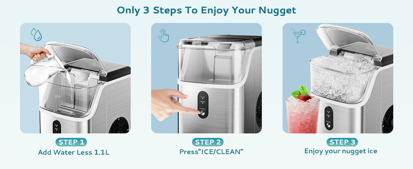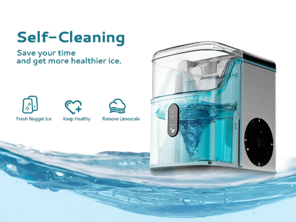 We suggest using an ice maker cleaner, vinegar, or lemon water. First, unplug the machine and then rinse all detachable parts with warm, soapy water. Wipe all internal parts with a soft cloth, add fresh water to the reservoir, and run a few cleaning cycles.